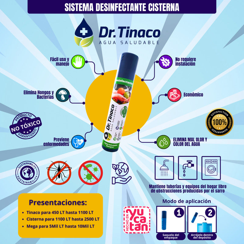 DR. TINACO es la solución práctica y segura para garantizar agua limpia y libre de microorganismos en tu hogar.